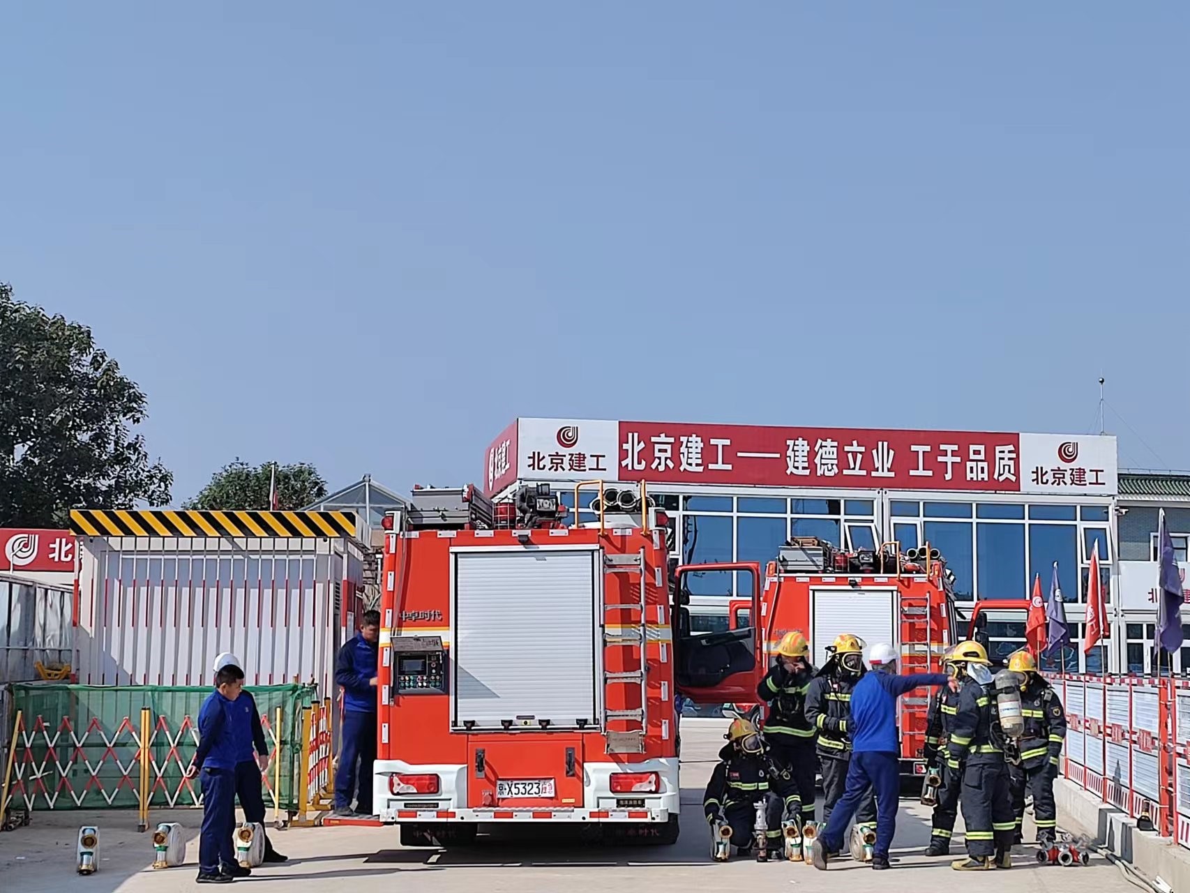 为全力以赴做好党的二十大安全保障工作,进一步检验和提升建筑施工安全事故应急处置能力和水平,切实提高项目管理人员及现场作业人员消防安全意识。10月7日,中关村论坛永久会址主会场项目联合海淀区消防支队颐和园中队开展消防安全演练活动