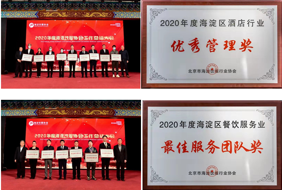 4月29日,稻香湖景酒店参加了北京市海淀饮服行业协会2020年度工作总结大会,并被海淀饮服协会授予了2020年度海淀区酒店行业“优秀管理奖”和2020年度海淀区餐饮服务业“最佳服务团队奖”双项荣誉。