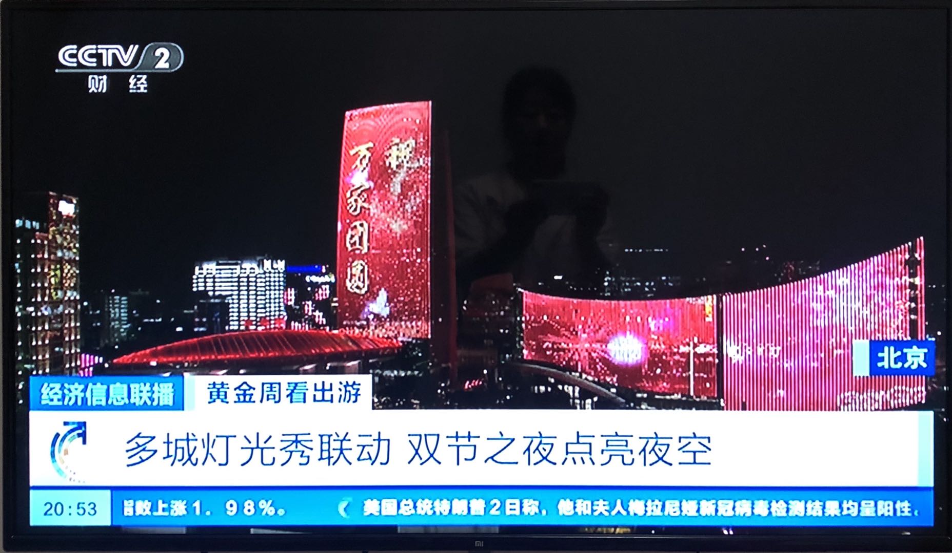彩旗与心动齐飞,月华共星光一色。10月1日晚,央视新闻客户端以“山河无恙、家国梦圆”为主题,在线直播2020国庆中秋双节灯光秀。中关村大街绚丽的灯光秀作为北京代表之一与全国各大城市,齐向祖国献上祝福,向英雄的人民致敬!